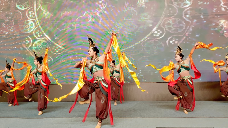 晚宴期间,魏学强会长致答谢词。甘肃省演艺集团带来《丝路·炽焰》《凤鸣朝阳》等精品节目,白马民族歌曲、藏乡舞蹈轮番上演,轮抽奖环节惊喜不断,现场氛围热烈非凡。