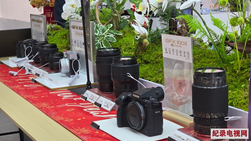 GFX产品区域:该区域集中展示富士GFX系列中画幅相机及配套镜头。陈列着GFX 100II、GFX 100SII、GFX100RF等多款机型。